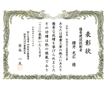 昨年度に引き続き二年連続で工事成績優秀企業に認定されました。
