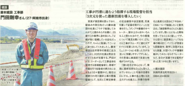 工事部 門田社員が徳島新聞小冊子『Startt』にインタビュー記事が掲載されました。